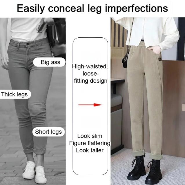 Step into the season with the Women's High-Waist Thermal Trousers — where comfort, warmth, and refined design unite. Crafted from luxuriously soft corduroy and lined with a gentle thermal fleece, these trousers are made to embrace chilly days while keeping you stylishly at ease.