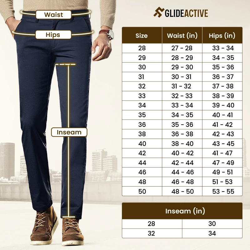 Please refer to the size guide below to get your correct size of waist, hips and inseam length. All measurements are in inches.
