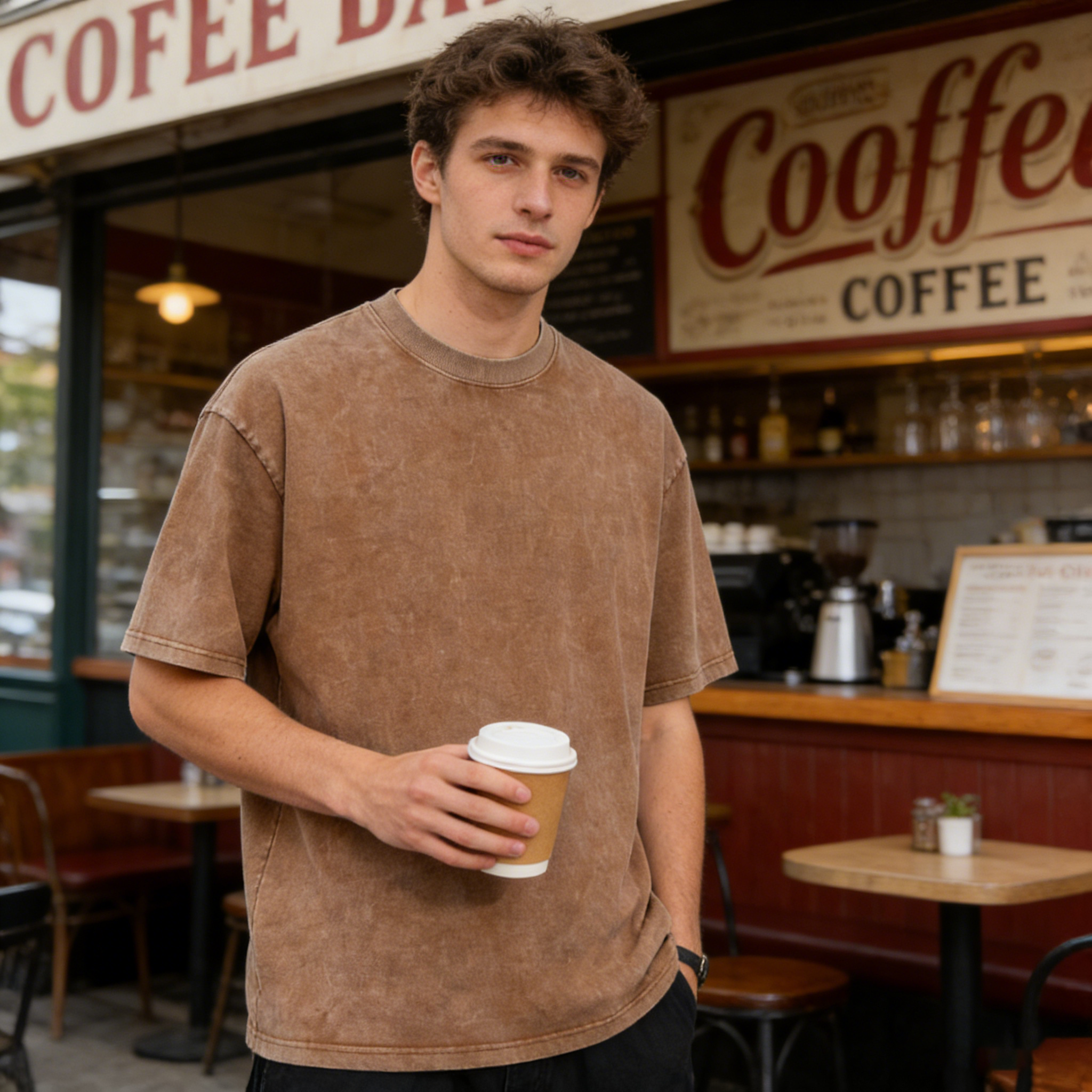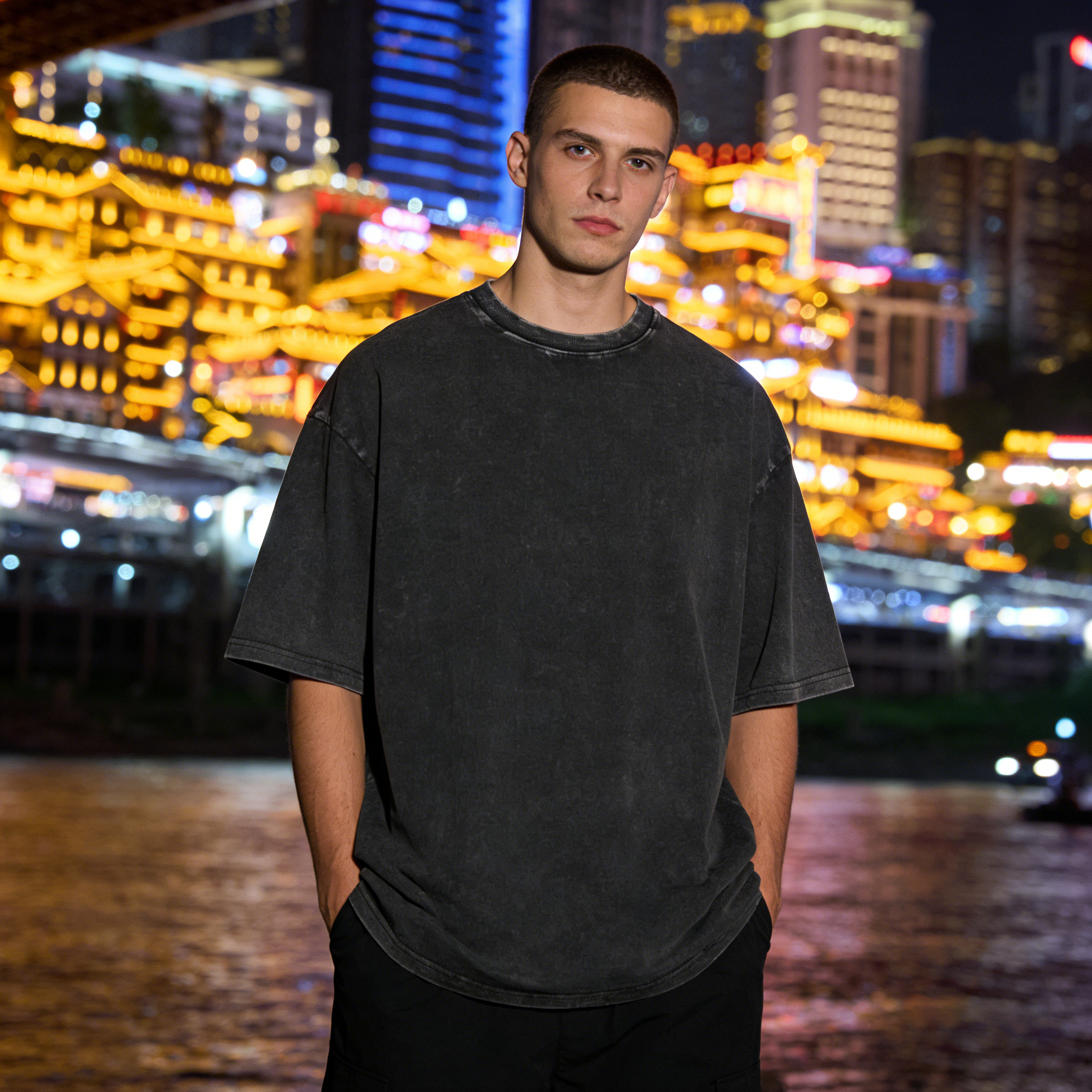 Men’s Plus Size 100% Cotton Acid Wash Oversized Heavyweight Vintage T-Shirt