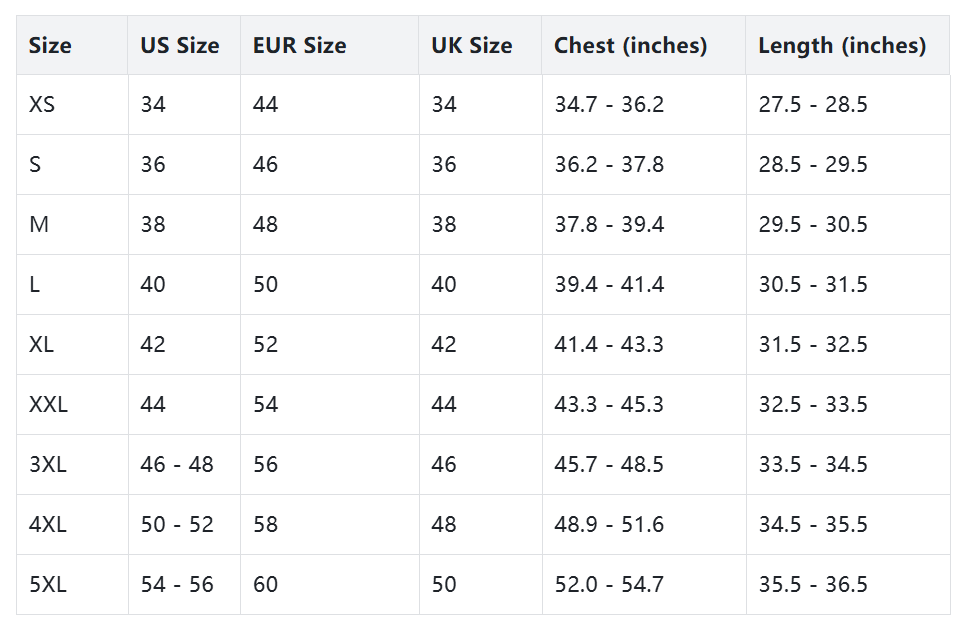 Body Measurements (in)