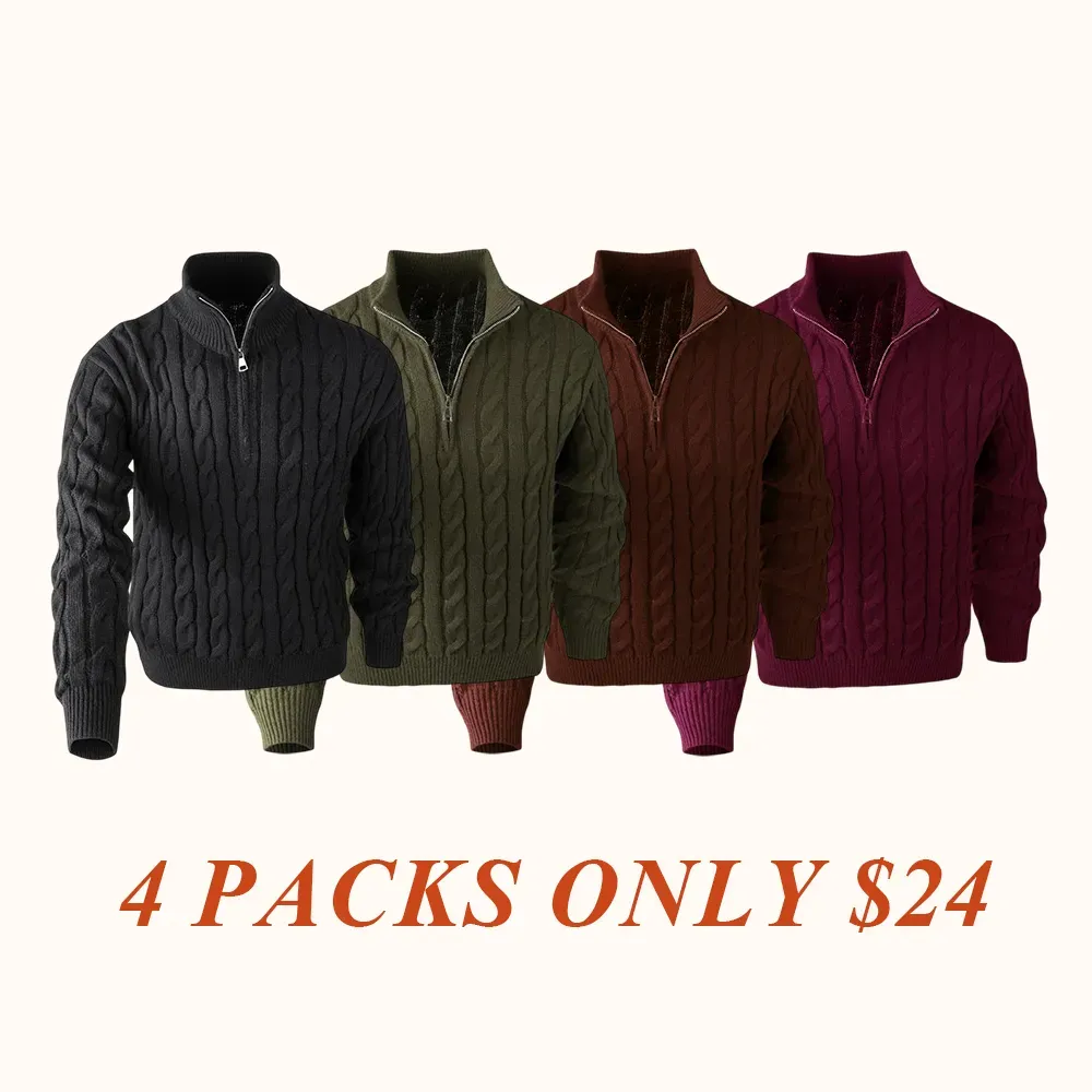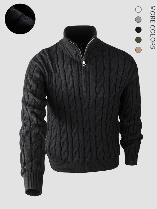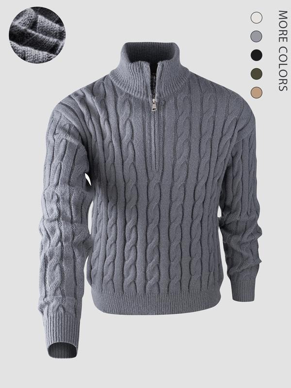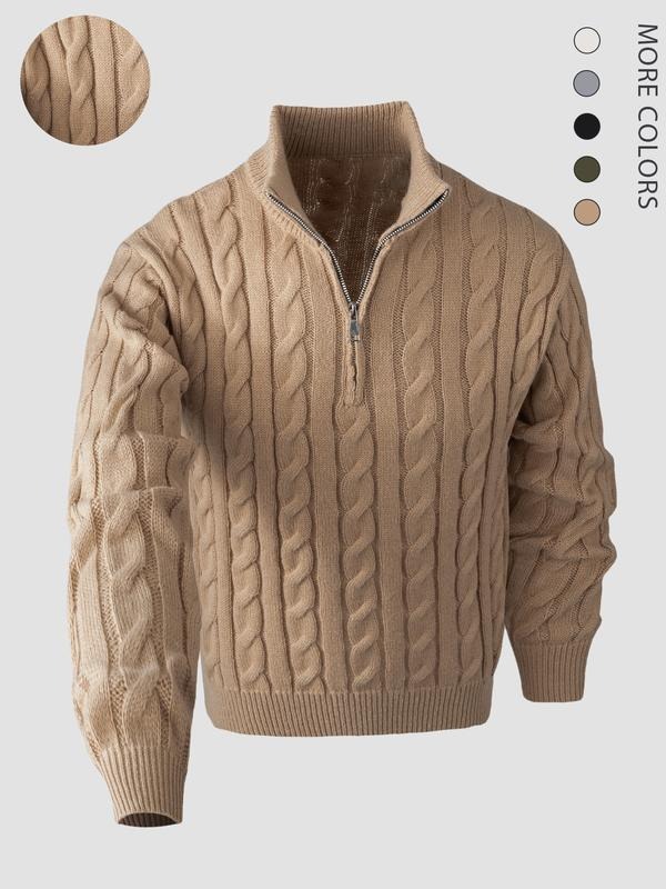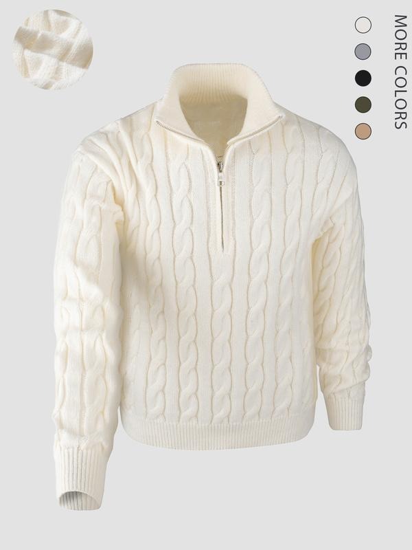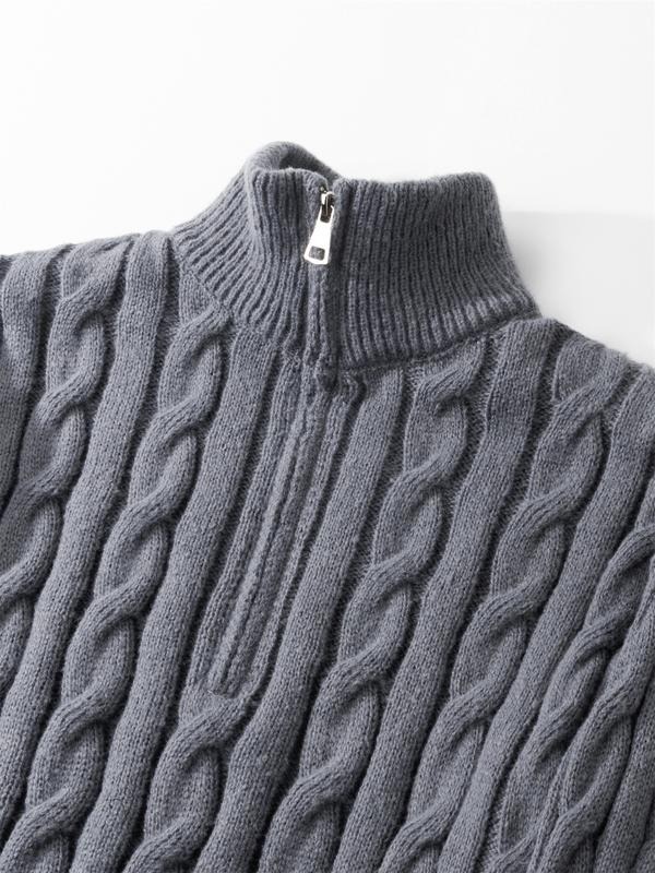 Elevate Your Style with Elegance Transform your wardrobe with this stylish knitted long sleeve sweater! The quarter zip cable knit design offers flexibility in styling. It features a mock neck polo sweater, adding a modern twist to classic wear. Perfect for casual outings, this sweater is versatile and comfortable. Pair it with jeans or chinos for a casual look.