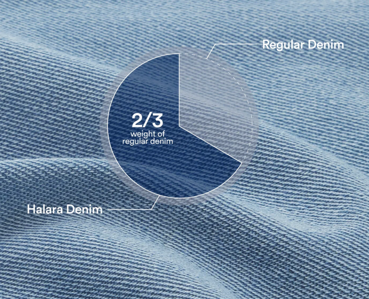 Weighing just 2/3 of traditional denim—about the same as an iPhone—this denim is so light, it feels almost weightless.