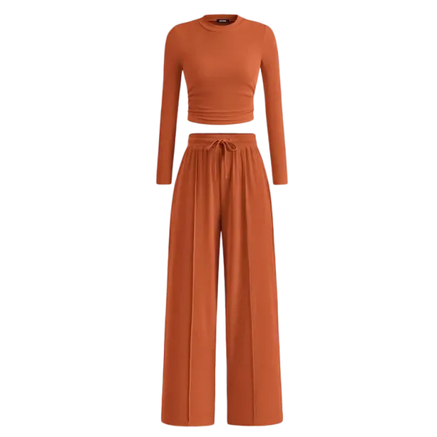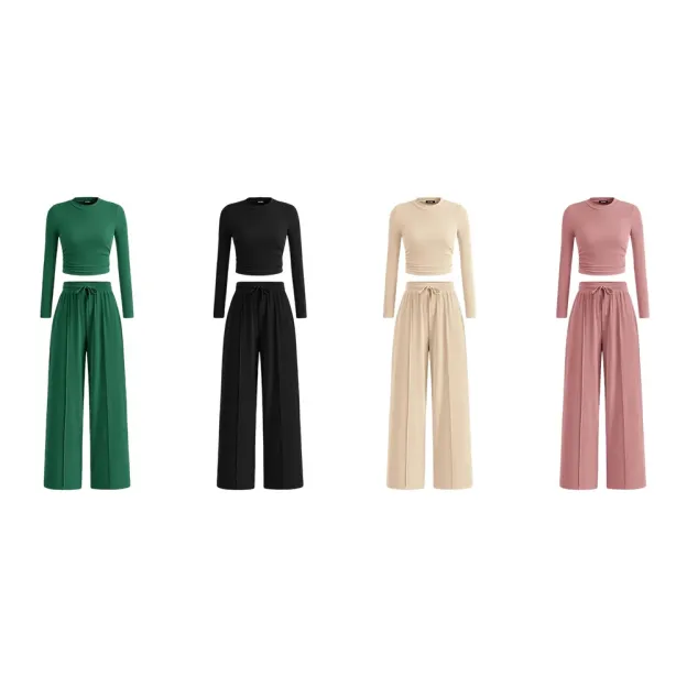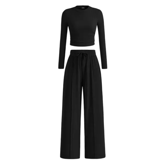 - DESIGN: The Slim Cropped Top Emphasizes Curves, While Wide Leg Pants Hide The Flaws, Accentuating Flattering Silhouette.